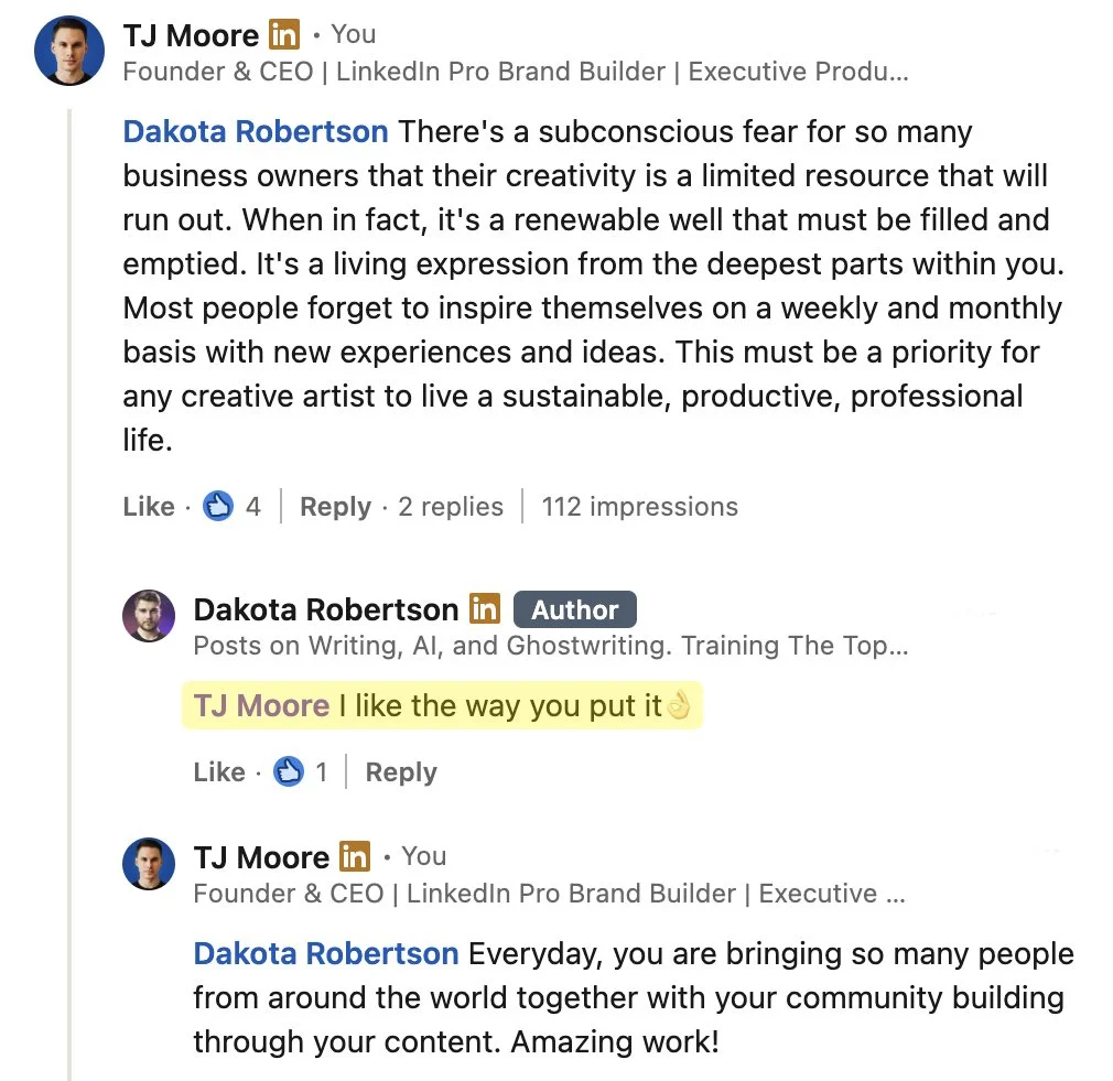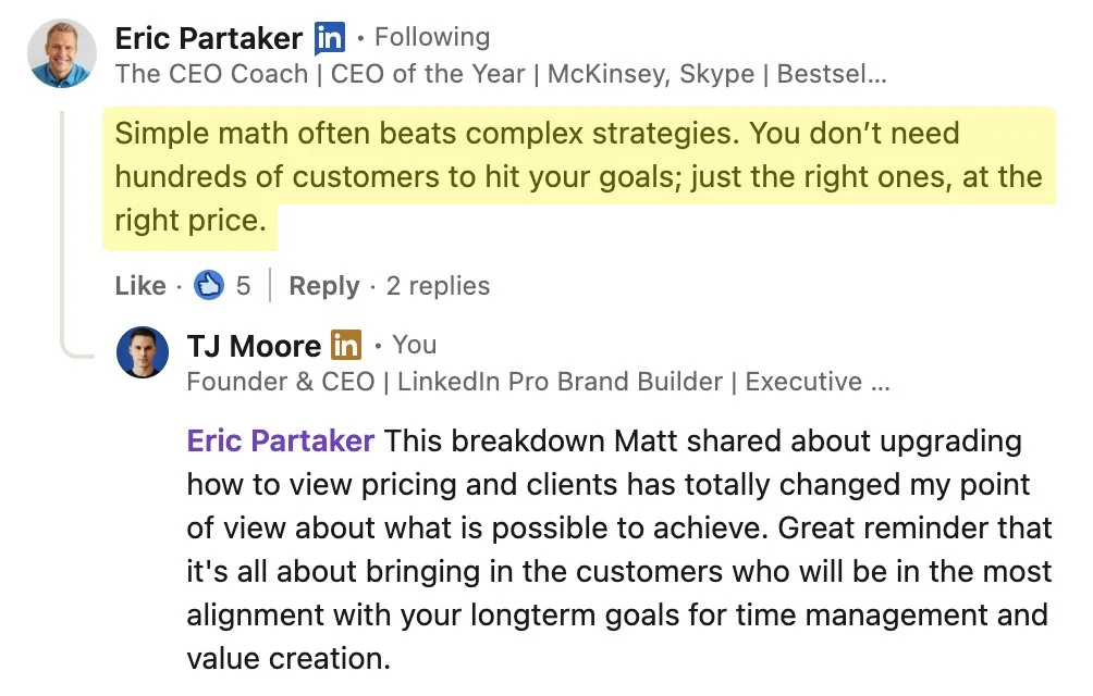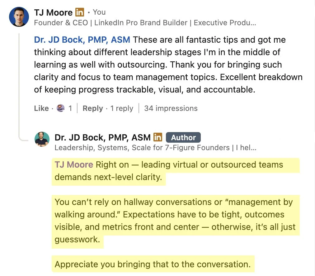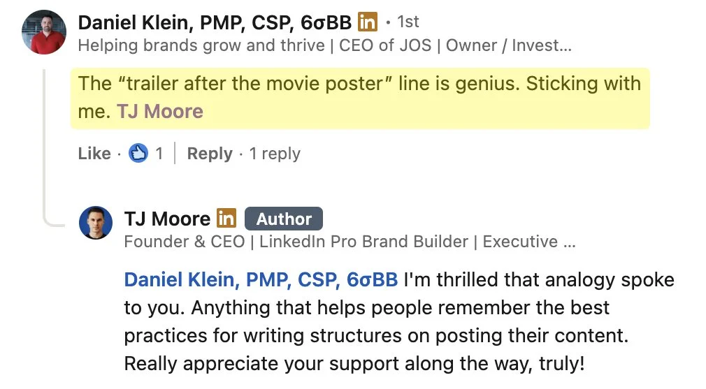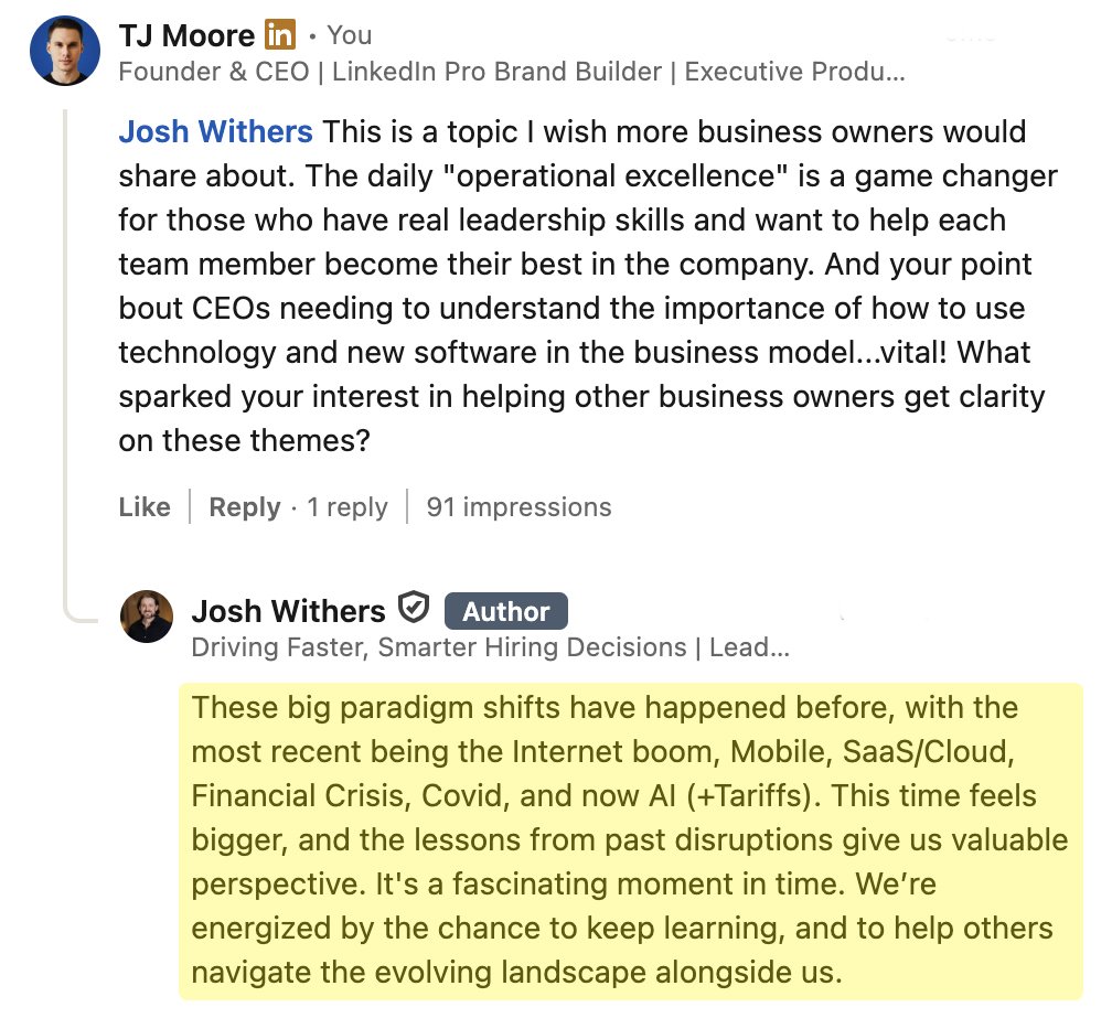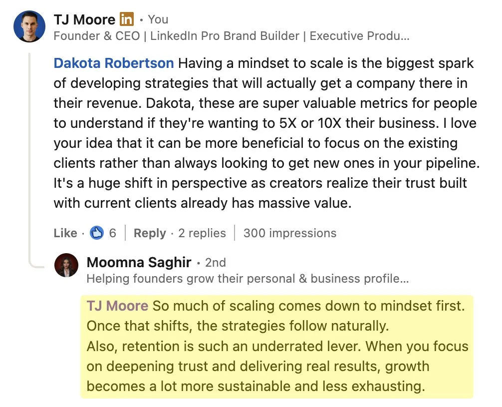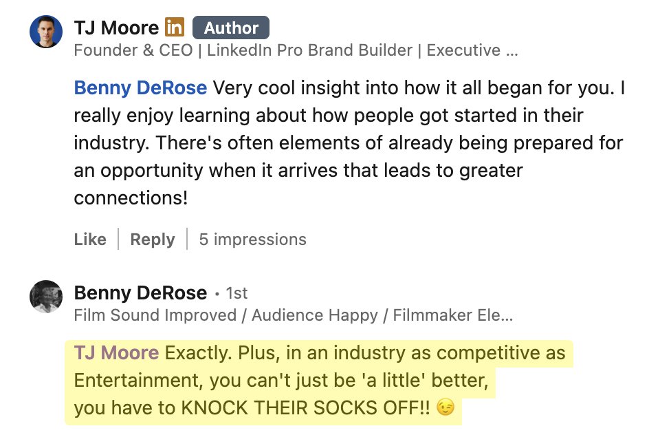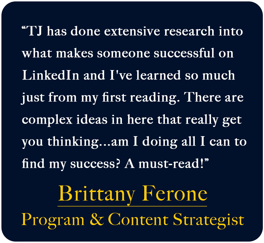 “I’ve created content for top Hollywood and global media brands. And now, I’m sharing everything I’ve learned about growing and monetizing on LinkedIn to business leaders in every major industry.” - TJ Moore