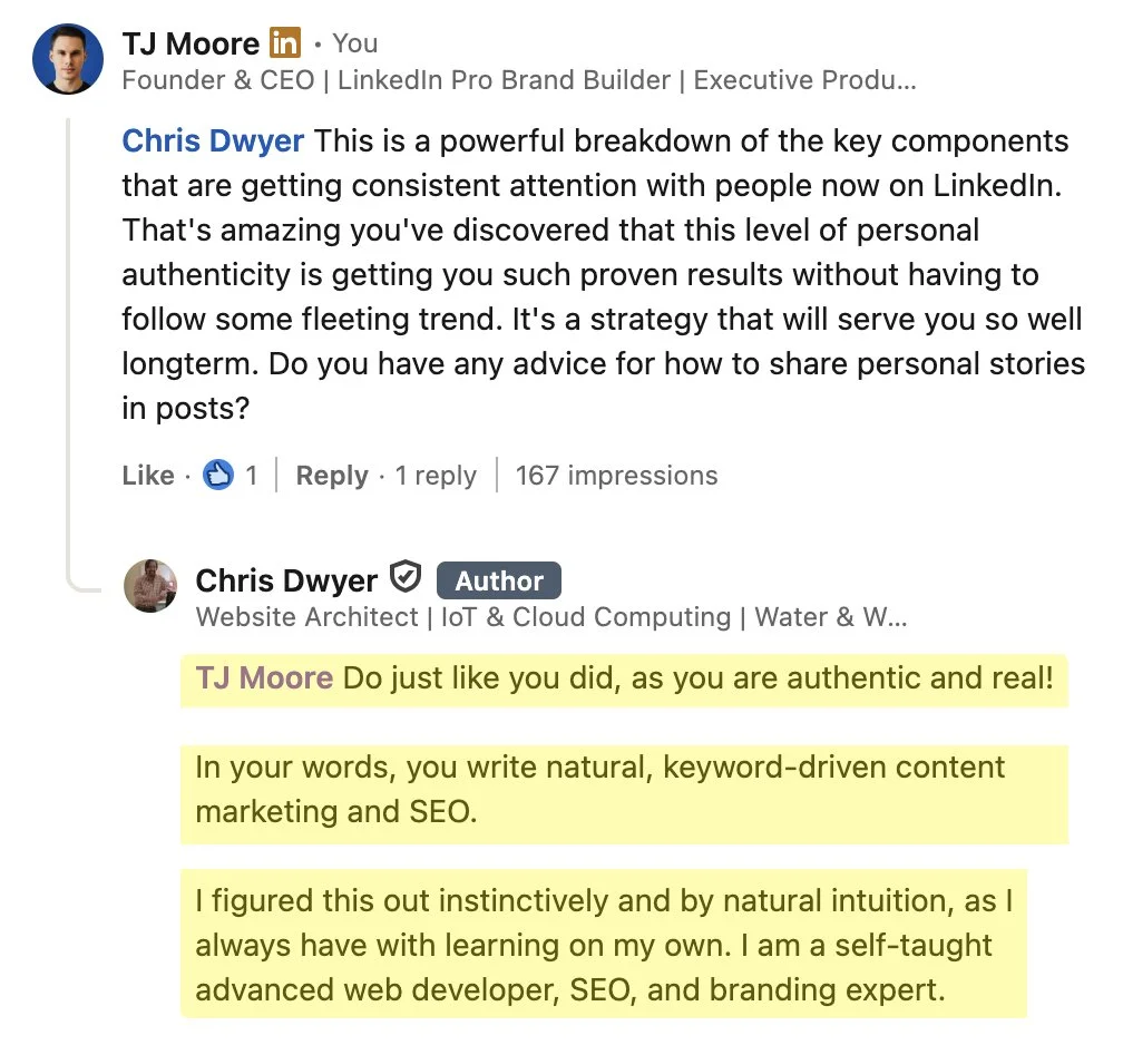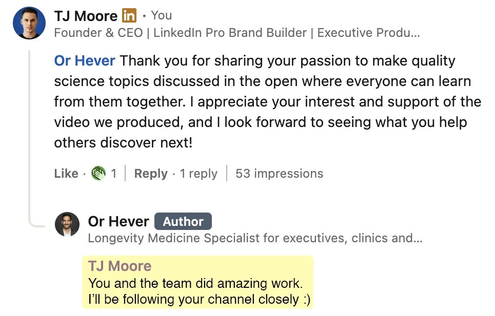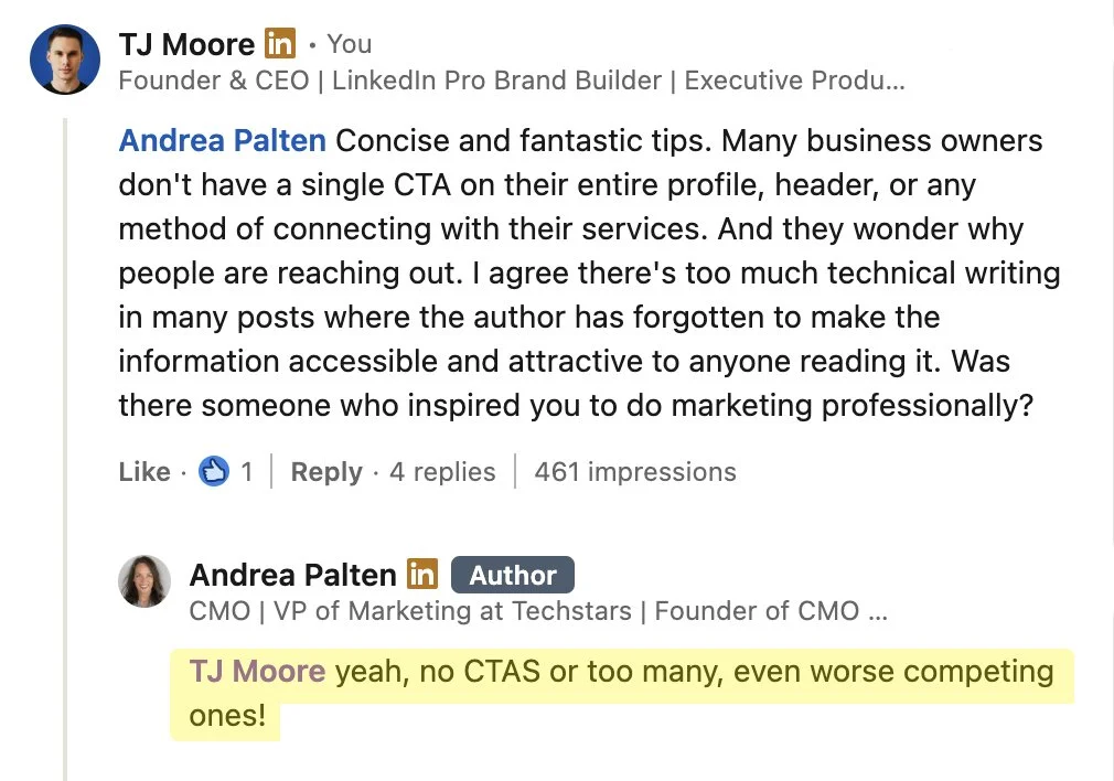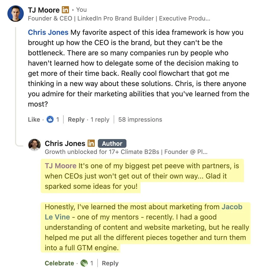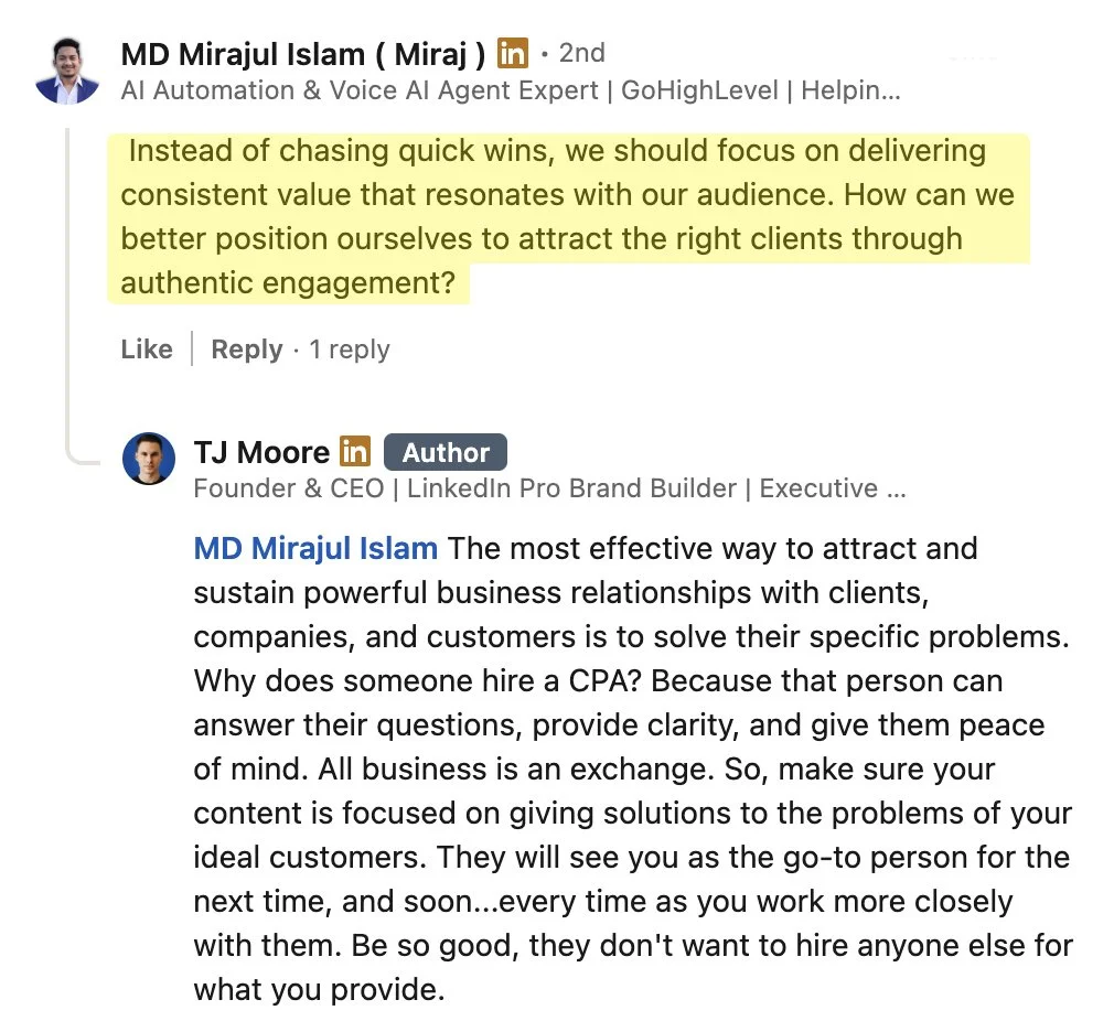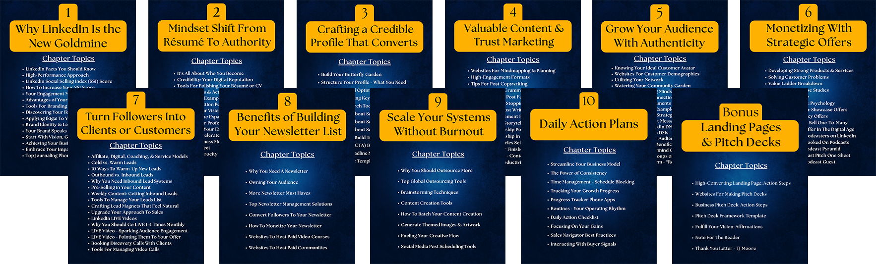 “I’ve created content for top Hollywood and global media brands. And now, I’m sharing everything I’ve learned about growing and monetizing on LinkedIn to business leaders in every major industry.” - TJ Moore